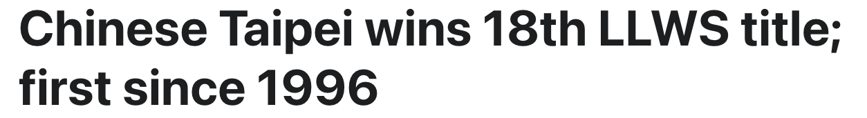 This may all seem more than a little academic. I don’t expect this will resonate much for a lot of sports fans. But what I find so interesting about this is the power dynamic. The reason the New York Times could run that headline in 1986, a full five years after any sports team from Taiwan was obligated to compete internationally as Chinese Taipei, is a matter of focus. It’s not that they didn’t know China’s preference on the matter, or couldn’t have found out.
